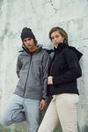Comfortable and modern padded softshell jacket. A removable and adjustable hood. Pre-curved sleeves for ease of movement. Four outer pockets with waterproof zippers and two inner pockets one with zip and one mesh. Velcro adjustable cuffs and reflective detail on back. Includes black lining.