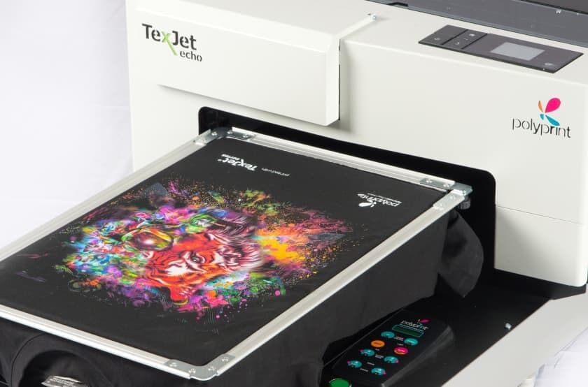DTG machines hold the garment in a fixed position and lay down speciality ink through a print head.